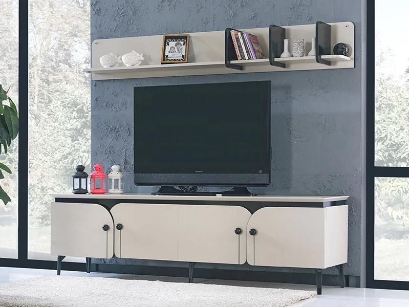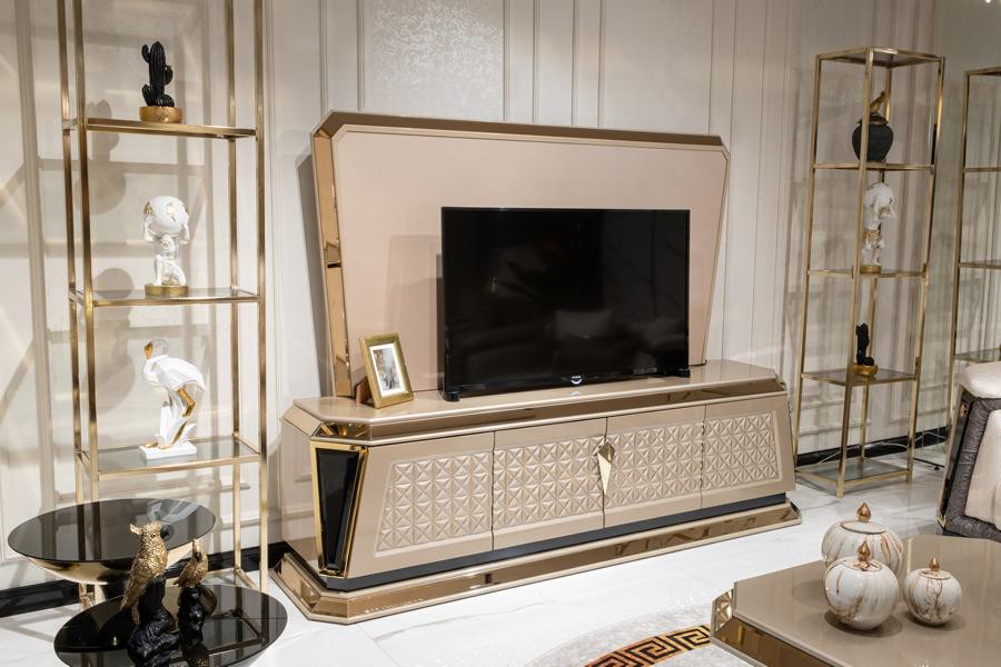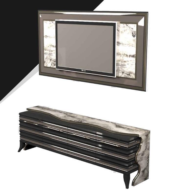 TV Schrank Moderner weißer Luxus Fernseher Ständer Kommode Wohnwand rtv