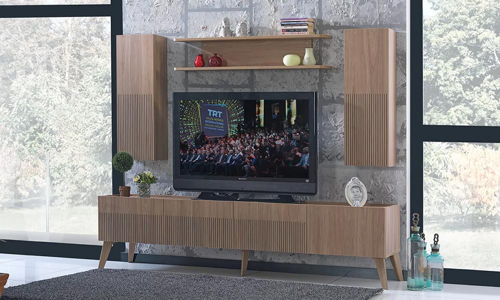 Graue Wohnwand Schrank Wohnwände Möbel Holz rtv Fernseher Design Schränke
